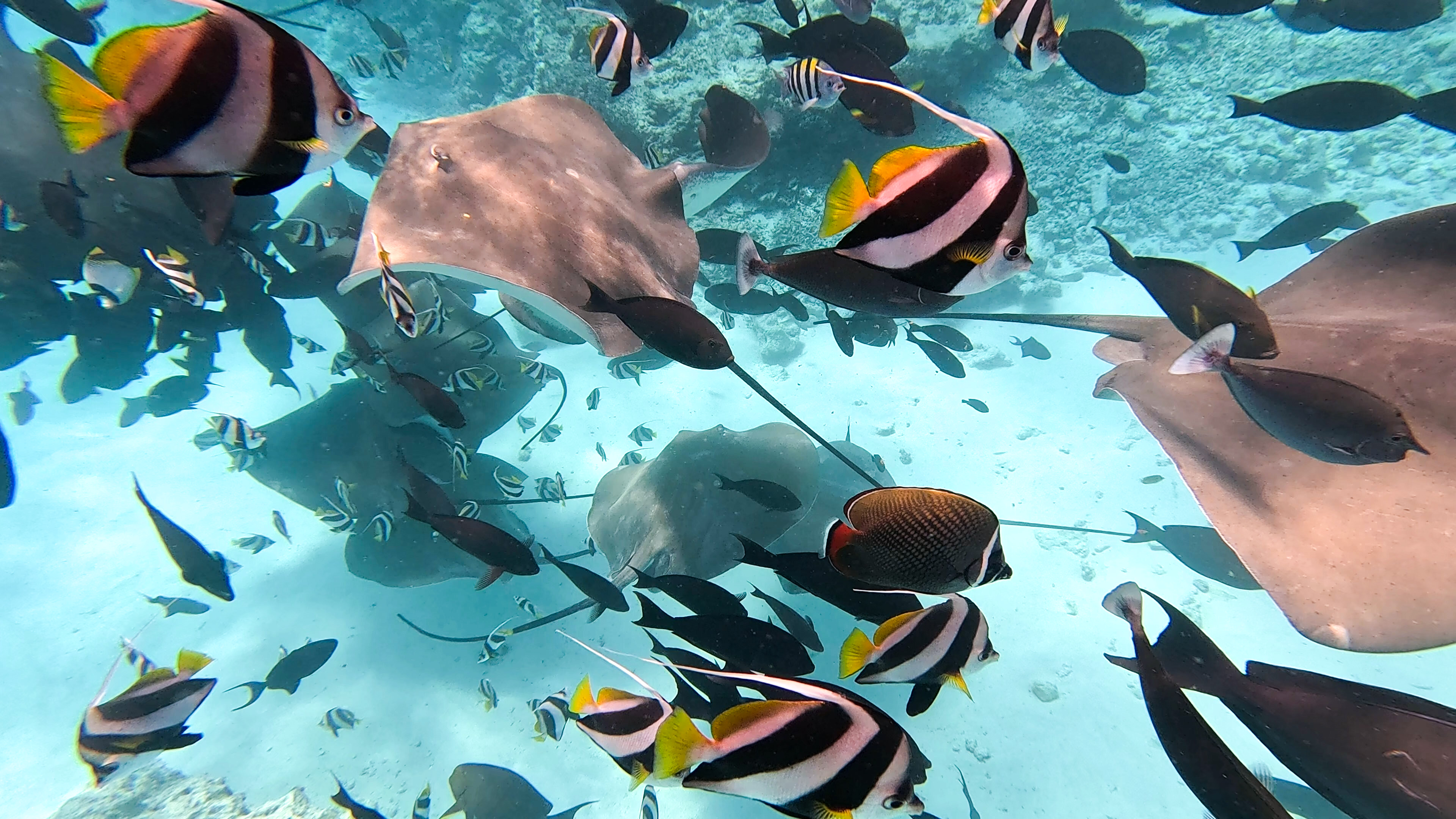 ... neboli akvárko ve volném oceánu. Rejnoci, barevné rybky a odpočinek na dalším z lokálních ostrovů.