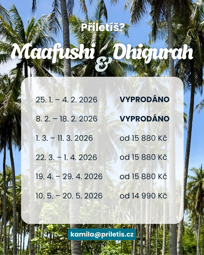 Denní návštěva jednoho z proslulých maledivských ostrovů s vodními vilkami. Den pro pořádný relax.